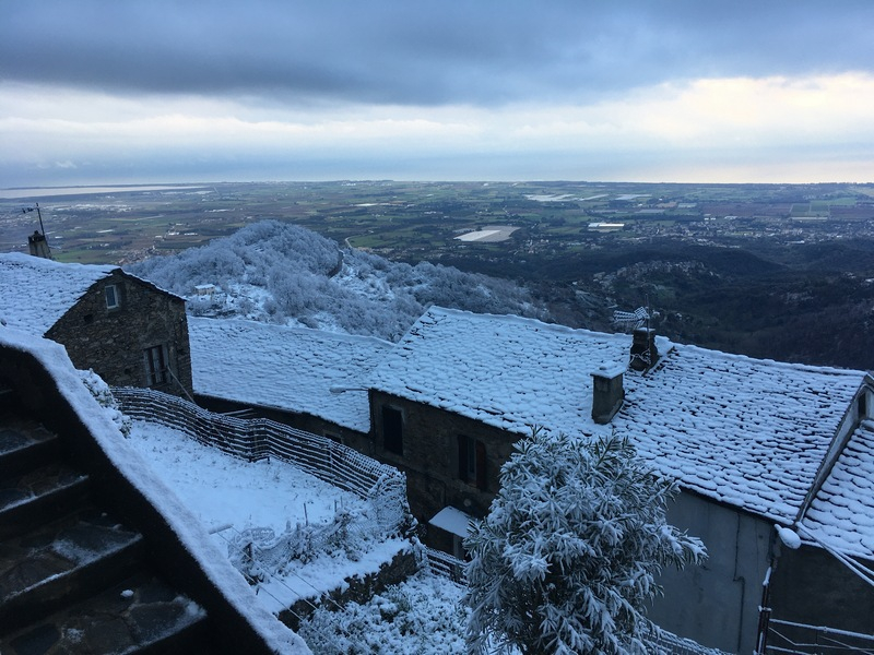 Sinon, ordi, télé, lecture et contamplation du paysage, je vous mets la vue depuis la fenêtre de ma chambre, aujourd'hui c''est un peu brumeux, je ne sais pas si sur la photo vous verrez bien les îles Eoliennes, notamment l'Ile d'Elbe. (La photo du bas, celle du haut c'est le village)