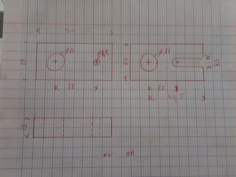 si ça intéresse quelqu'un voici le plan des pattes que j'ai fabriqué pour attacher le démarreur directement sur le moteur pour pouvoir le démarrer en dehors de la voiture après une réfection ou autre.