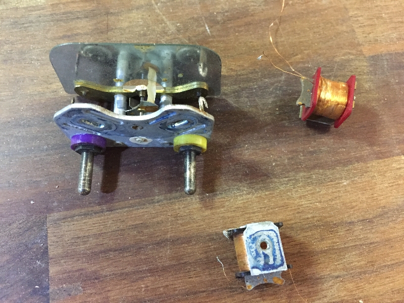 la bobine 18 ohm est la bobine rouge, la 75 ohm la noire. Il y a possibilité de régler la position des bobines pour être plus ou moins loin de la plaquette de l'aiguille, en dévissant les vis support pour déplacer la bobine correspondante. Cela sert à ajuster correctement le maxi et le mini en fonction de la résistance maximum du rhéostat (réglage possible pour une résistance rhéostat maxi entre 75 Ohm et 125 Ohm)
