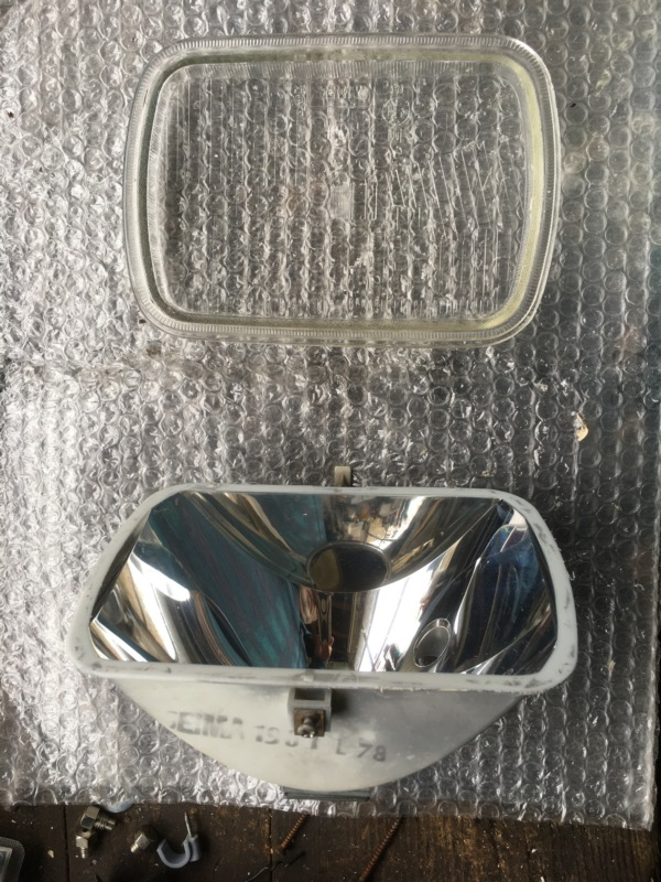 Donc je recherche soit un verre tout seul, soit un cuvelage pour phare en plastique (c'est à dire le réflecteur avec le verre, c'est ça qu'on appelle cuvelage de phare, pas le bol) même avec réflecteur complètement rouillé.