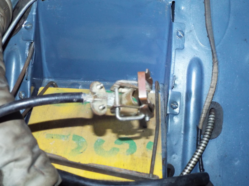 Il y a aussi cet accessoire d'époque qui se monte directement sur la borne moins, il suffit de le dévisser d'un ou deux tours pour couper le courant. C'est la molette verte. Je n'ai pas la voiture sous la main pour faire une photo plus visible.