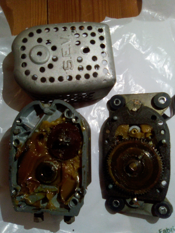 - pour éliminer l'hypothèse d'un moteur d'essuie-glace HS, j'ai décidé de démonter le moteur : voir photo. La molette du boitier droit (la grande) tourne, en revanche celle du boitier gauche (petite rouge en haut à droite) non. En +, tout ça est noyé dans de la graisse épaisse :larmes: . C'est normal ? Dois-je nettoyer la graisse ancienne, mettre du dégrippant, m'assurer que la mollette, remettre de la graisse ? :???: