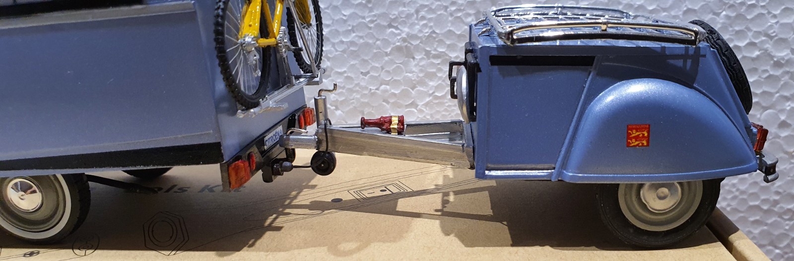 La remorque a été faire avec l'arrière de la caisse de la maquette que j'avais coupé en deux.