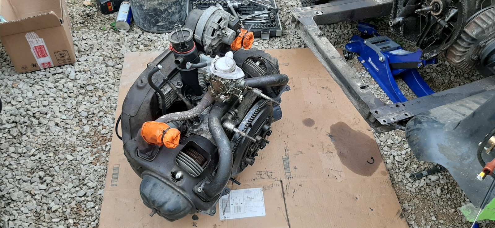C'est donc une Méhari de 1973. Donc démontage de l'ensemble moteur/boite, qui avait grand besoin de nettoyage, pour commencer! Parce qu'il y'avait pas mal de monde dans tout ça, entre le sable (vis en bord d'ocean), insecte, paille, et plein d'huile pour tout coller! Donc j'ai attaqué le nettoyage, après avoir tout démonté. Moteur plutôt sain, mais les chemise marqué et fatigué.