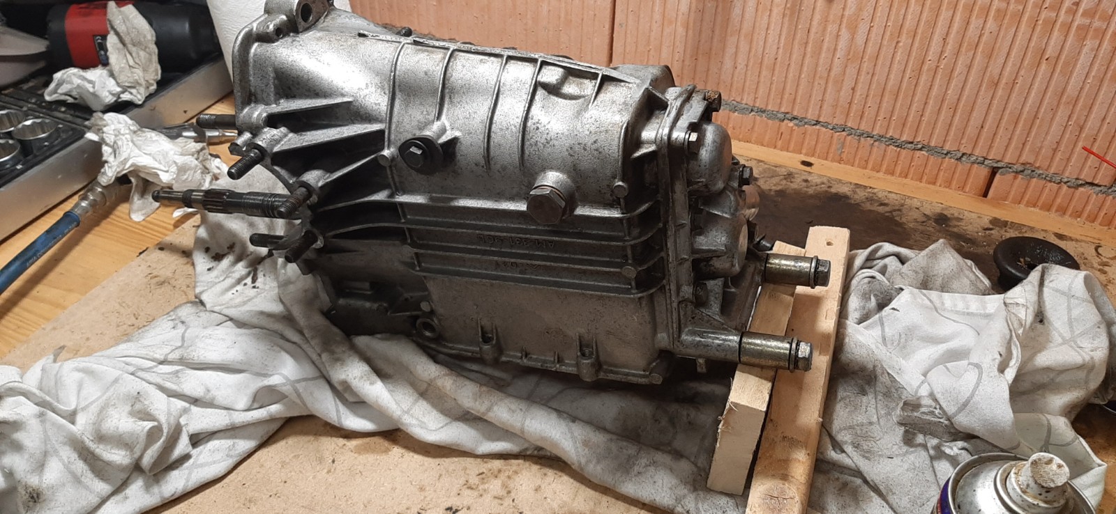 Donc démontage de l'ensemble moteur/boite, qui avait grand besoin de nettoyage, pour commencer!