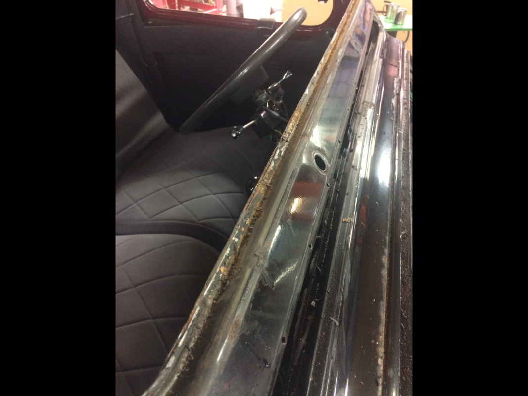Je me disais aussi que la tôle sous le joint de pare brise était plutôt pas mal, mais c’est de toute façon une bonne chose d’avoir stoppé les dégâts à cet endroit.
