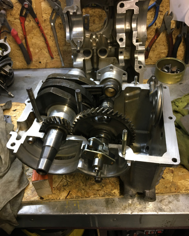 après un dégraissage ,j'ai contrôlé le vilebrequin,pas d'usure ,pas de jeu sur les bielles j'ai quand même remplacé la bague arrière par une neuve car celle d'origine avait quelques traces l'arbre a cames ne présente pas non plus de défaut et la métrologie est bonne ,donc je referme et je remonte le reste il commence a avoir une belle gueule ce moteur !! puisque j'en ai parler sur le post de la rénovation de l'aza de solognio,le freinage des raccord de refroidisseur d'huile ya plus qu'a retourner dans le chassis ,c'est ce que j'ai fait hier !! au passage ,les spécialistes me dirons a quelle filtre a air j'ai affaire pour trouver les stickers qui vont bien ....