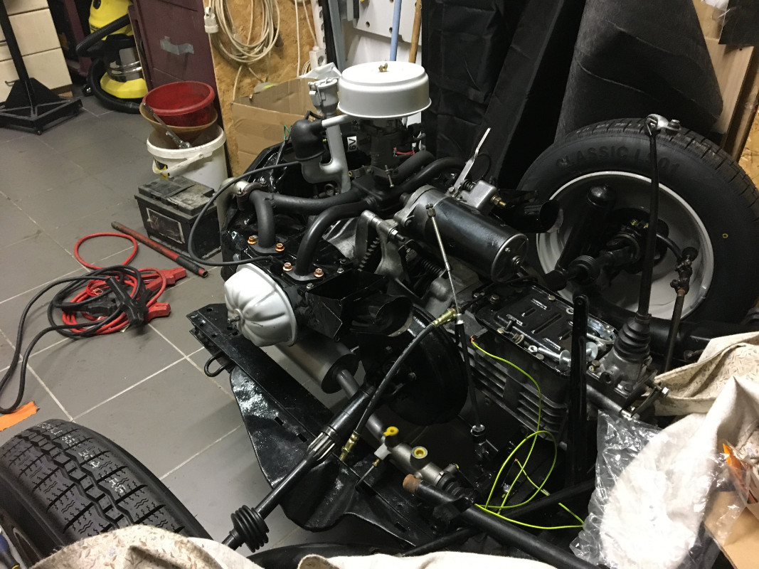 bon alors le pourquoi du comment du surnom d'Enigma, quant on a commencé la rénovation de la caisse avec Loïc et surtout avant de savoir que la voiture venait de Belgique,nous avons remarqué des différences ,gouttières ,soudures , fixations etc .....bizarre .ensuite j'ai attaqué le remontage du châssis ,j'avais commander les roulements de roues pour 2cv en 72 et il s’avère que c'est en fait du 74 donc Ak ou ami6. ensuite de la même manière j'avais commander les amortisseurs arrière et impossible a monter .taille des goujons en 14 sur mon châssis au lieu de 12 et débattement qui ne correspondent pas .après mesure j'ai monté des arrières de Ak 400.du coup j'ai mesurer l'ensemble du châssis ,il semble correspondre a un 2 CV. les bras avant sont en fait d'acadyane ou de méhari les bras arrière sont d'ami6 (différence de voies ,1290 pour 2cv et 1260 pour ami6).
