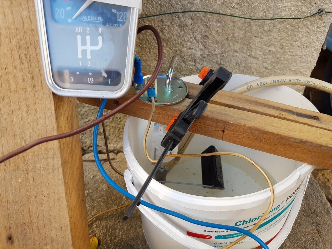 J'ai donc fait le test avec un métrix en position ohmmètre, curseur sur 200 et voilà les valeurs : Pendant que vous réfléchissez, je vais de ce pas faire un test empirique, avec un seau de l'eau et siphonner !!!