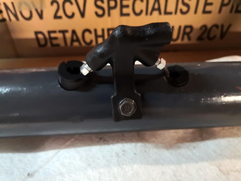 Deux bout de tuyaux PVC et hop Et ensuite j'ai remonté les freins et réglé les excentriques Un petit coup de maillet pour bloquer les tuyaux de freins sur les bras de suspension.
