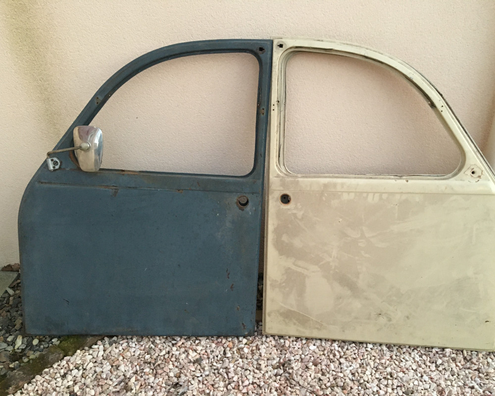 J'ai moi même du mettre des portes récentes avec cales alu, sur ma deuch de février 72, a regret mais je n'ai pas réussi a en trouver en d'autres en bon état!