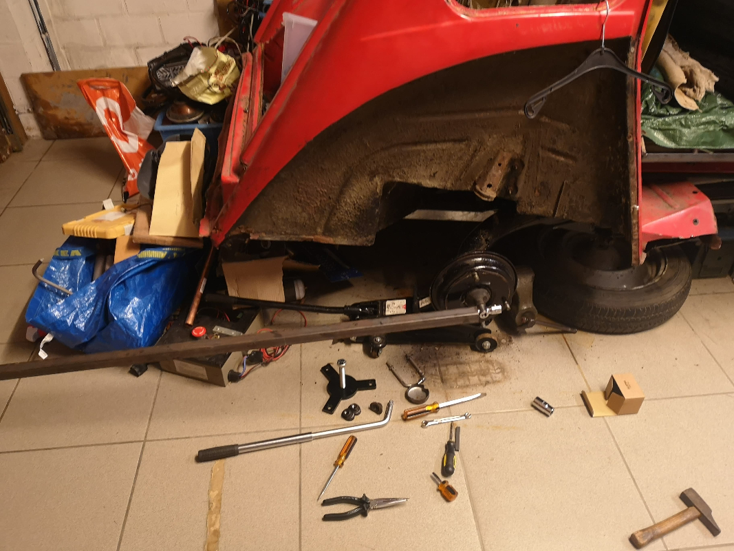 On avance! La descente dans le Var approche (ce qui devrait correspondre au déconfinement j'espère), donc j'ai terminé de sortir ce qui restait de la caisse (levier de frein à main, système d'ouverture de capote, etc...).