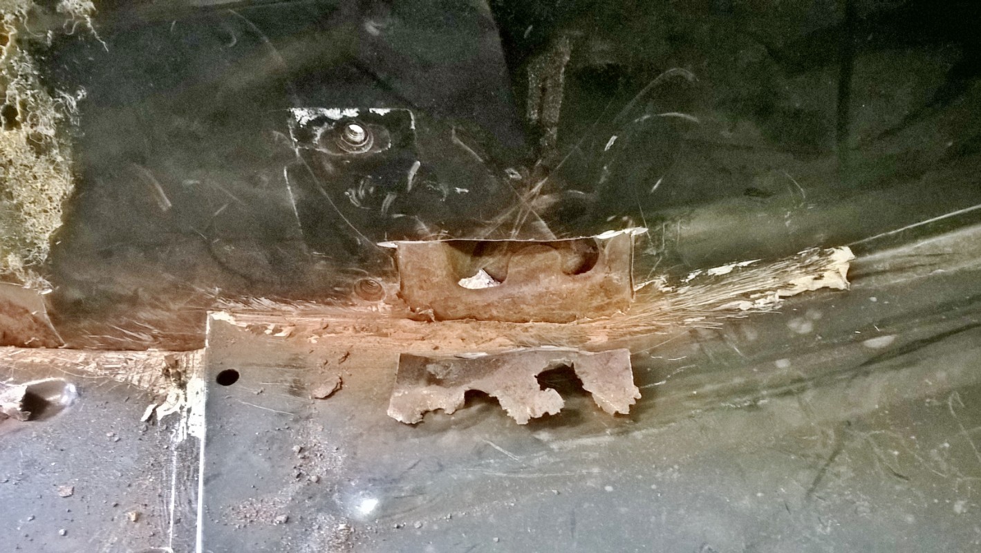 Je pensais qu'il n'y avait de la rouille qu'à un endroit de chaque coté de la caisse mais cela aurait été trop beau, il y a deux zones de chaque coté :larmes: