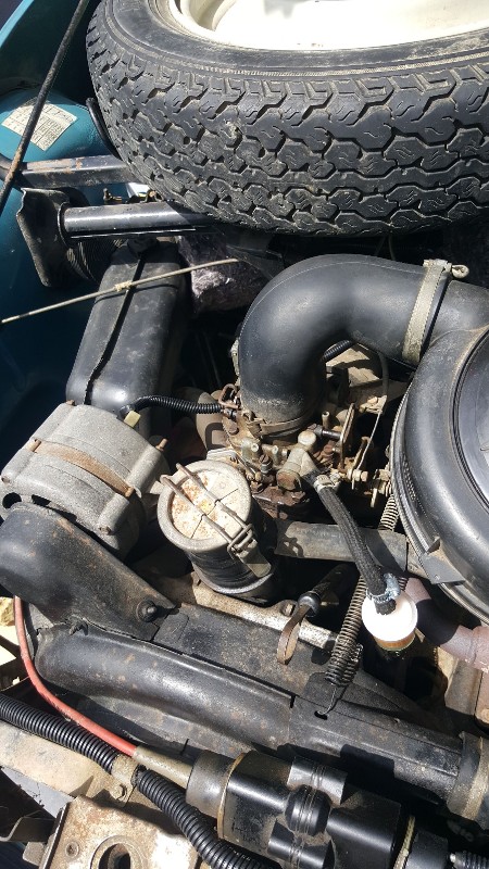 Pour le moment j'y ai fait 1 bon nettoyage, vidange moteur et boite, remplacement 1 cardan, mise en place d'un filtre sur arrivée d'essence au carbu, petit réglage du ralenti, pose des tubes de chauffage, remplacement des garnitures de freins à l'arriève et nettoyage des tambour rouillés, reprise du faiseau côté moteur où il y avait quelques dominos lol. Le chassis et le plancher sont supers sains, mais je leur ai passé 1 coup de peinture Hammerite. J'ai aussi fait 1 vidange du réservoir d'essence et réparation de la jauge où le flotteur s'était fait la malle au fond du réservoir.