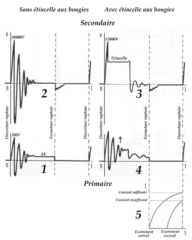 Celui-ci agit comme le système vis platinée-condensateur. La tension délivrée est une tension de rupture ayant la forme d'une courbe d'amortissement. On ne peut la mesurer qu'avec un oscillo.