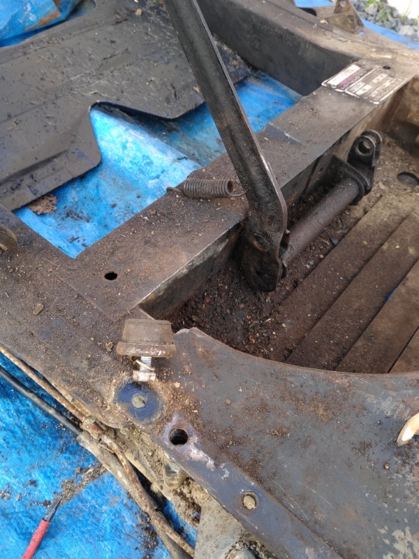 Là elle est juste posée dessus mais on voit un rond de rouille plus clair, et c'est de là qu'elle a été extraite à priori. Du châssis donc. C'est sensé être la ça ?