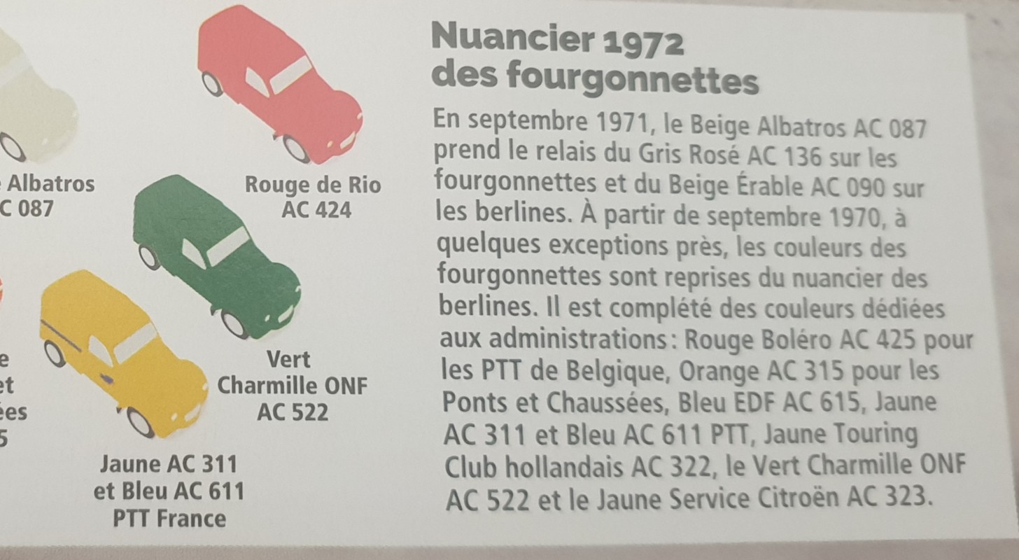Salut @robert48 , tu n'aurais pas des photos de ce temps là, lorsque tu étais mécano des PTT ?robert48 a écrit : ↑03 sept. 2021, 20:55 Bonjour etant un ancien mécano des PTT je peux te dire que c'est une vraie par contre le verrouillage pour la boite de vitesses il y a longtemps que ça ne se fait plus,pour tes fuites de boite ce sont les joints qui sont dans les sorties en alu à demonter avec une clé à pipe de 29 il me semble,pour la couleur tu as une pastille sur le tablier coté passager EDC ou AC 311 en Renault c'est 030.Les pièces de tolerie chez renov 2cv sont bien les trous des planchers lateraux tombent en face.Le bras en biais c'est surement le roulement conique HS.