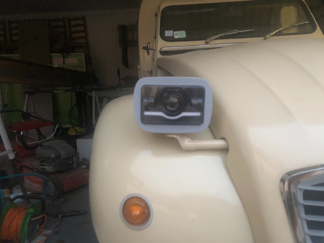 Cherokee je crois) dans les « carénages «  si je peux les appeler comme ça d’origine rectangulaire à l’aide d’un petit cache en acier fait main.