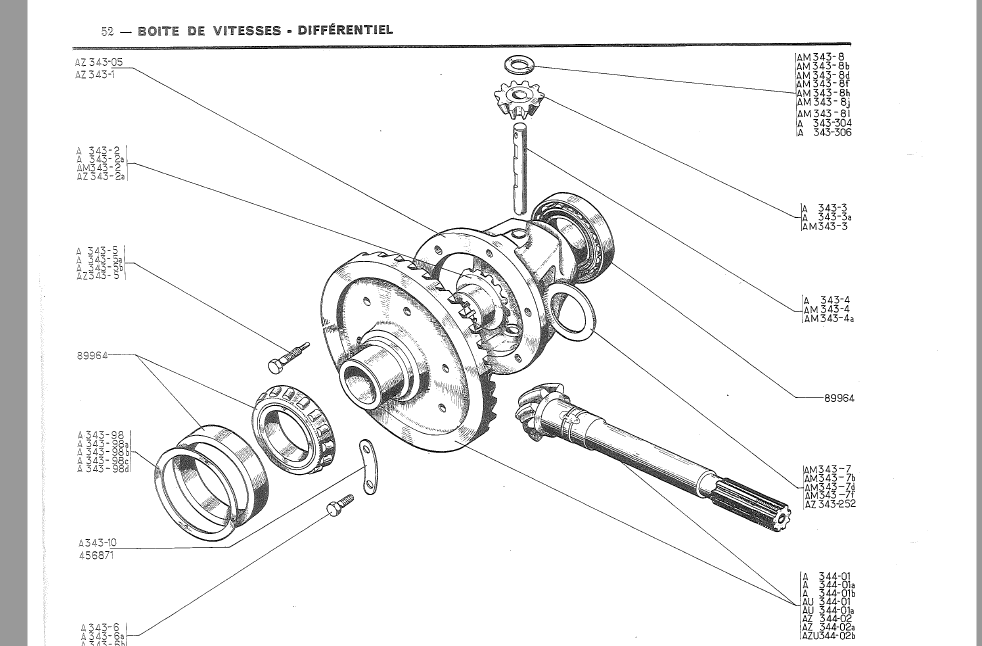 le différentiel c'est l'ensemble pignon d'attaque et couronne dentée avec les planétaires :