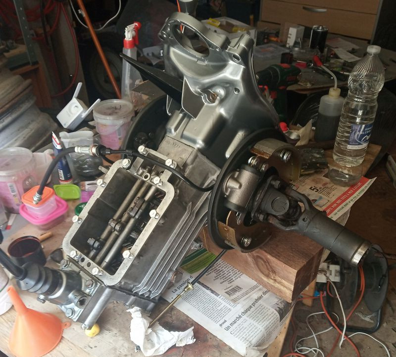 pour ma part j'ai remonté le socle de commande de vitesse, j'ai remis le carter avé le différentiel,