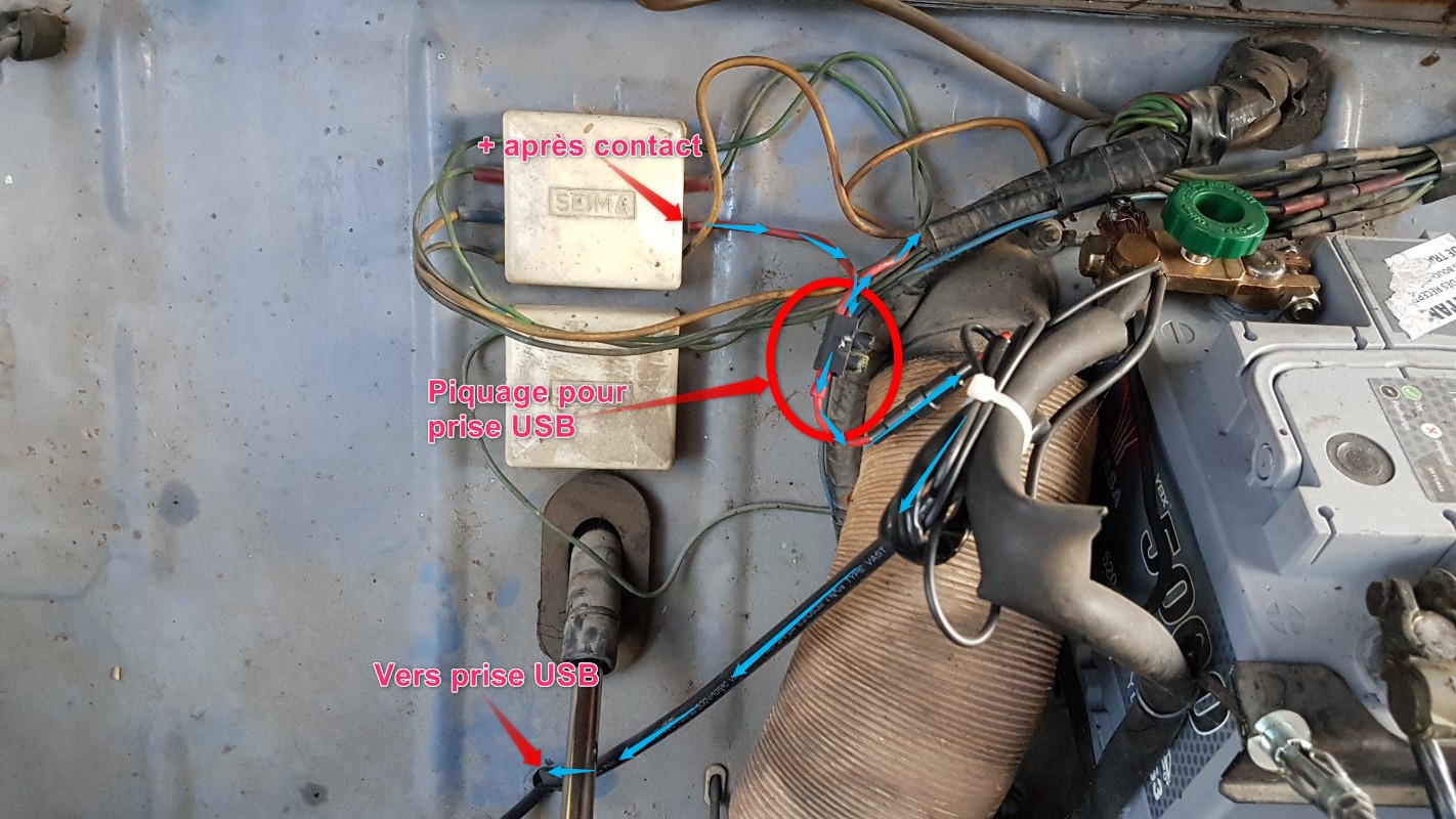 On est d'accord que quand j'écris "contacteur", on est bien sous la clef de contact ... sur la partie barrée en rouge !