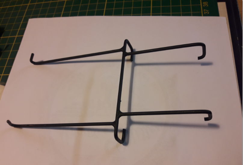 Baguette de soudure de 2 m/m pliée à la pince plate et quatre points de brasure et un coup de peinture en aérosol de votre choix