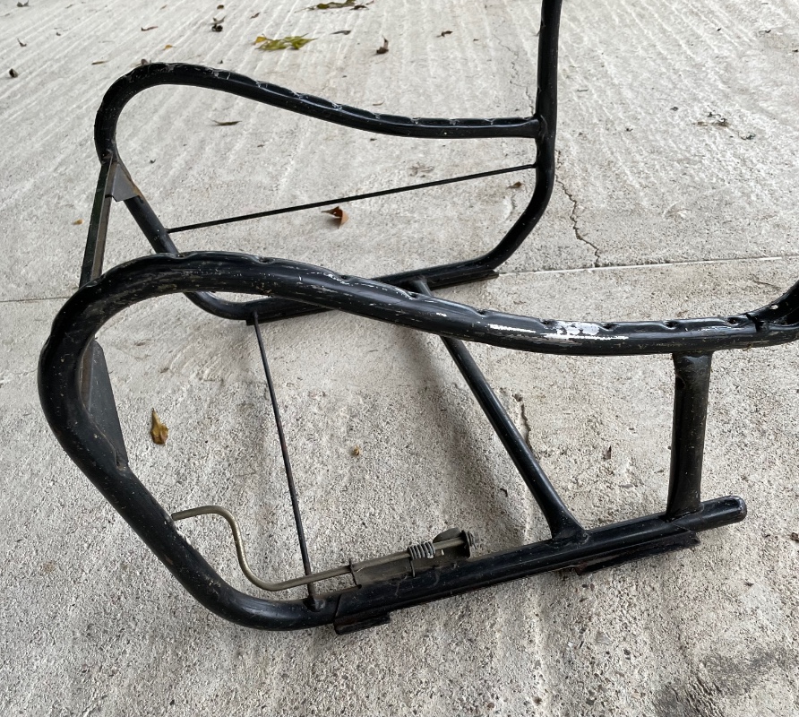 Après avoir enlevé les anciennes garnitures, mousse, assise, etc, voici la forme de l'armature de siège avant droit.