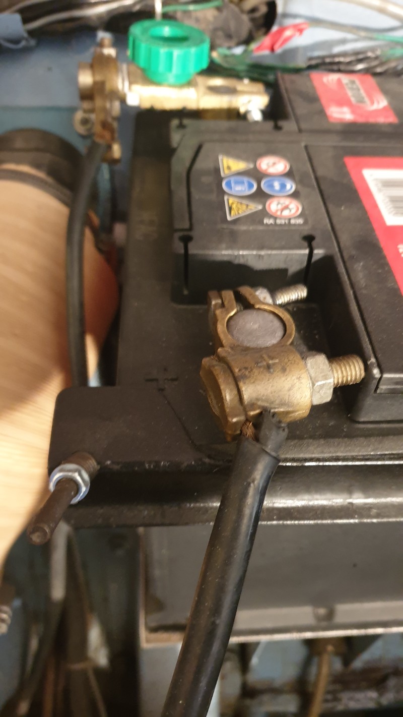 J'avais des soucis de demarrage au printemps, j'ai voulu booster la batterie de la 2CV avec celle du 4x4... sauf que comme tout le monde l'a remarque, la borne + de la batterie est tres proche de la barre de fixation, et ce qui devait arriver arriva. La pince des cables a bouge legerement, et a fini par toucher la barre! Etincelles, fumee sous le capot et a l'interieur, et comme Damien, j'ai mis une grande claque sur le cable pour le faire sauter!