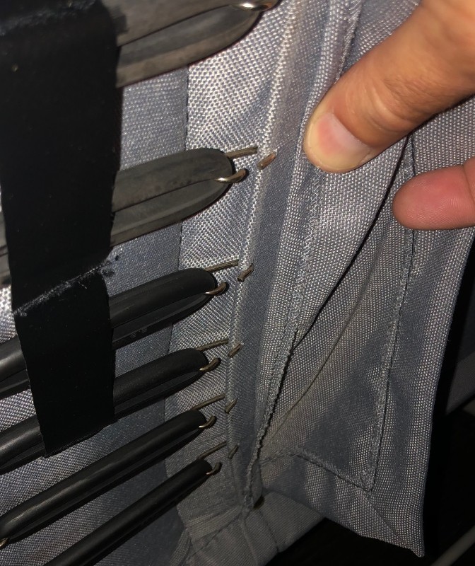 Retour d’expérience de mon achat avec photos de l’original (à gauche) …du produit MCDA (au milieu) et d’une enveloppe bayadère d’origine neuve jamais montée. Sur la bayadère jamais montée il y a une protection … mais elle ne devait sûrement pas être montée d’origine sur l’AZ. Les garnitures MCDA sont plus épaisses et sûrement plus confortables mais livrés avec des tringles brutes à recouper et à tordre … de 2,65 mm alors que les originales font un diamètre de 1,66 mm… le tissu du dos m’apparaît aussi plus épais que les originaux… leur aspect est sympa … sauf ces foutues tringles qui chez leur concurrent Mehari Cassis sont conformes aux originales et très faciles à monter… les photos :