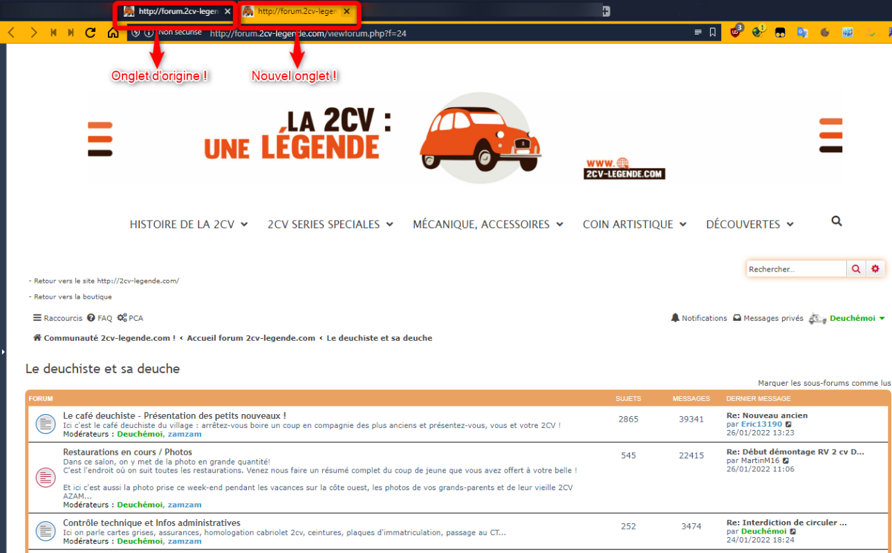 Si tu es avec un ordi sous Windows, clic droit sur un lien, par exemple, le salon dans lequel tu es, puis "ouvrir dans un nouvel onglet" ! Du coup, tu peux naviguer dans ce nouvel onglet, sans perdre le début de ton texte dans l'onglet d'origine !louislarénov a écrit : ↑26 janv. 2022, 12:18 mais je veux pas quitter mon texte, j'ai un mal de chien à le récupérer dans les brouillons.