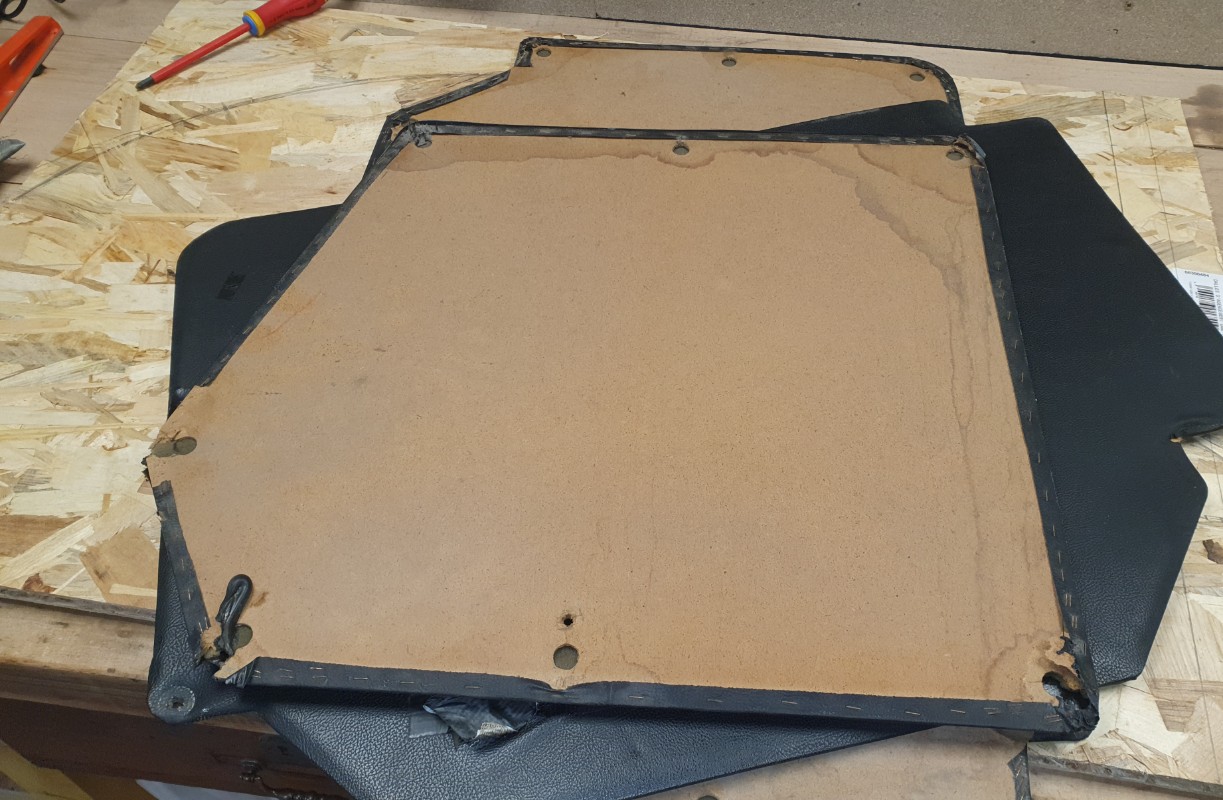 J'ai démonté également les intérieurs de portes qui sont déchirés et la plaque à l interieur cassé sur certain. Comme j'ai les gabarit , je vais les refaire moi même car entre 90 à 110 euros les 4 panneaux neufs