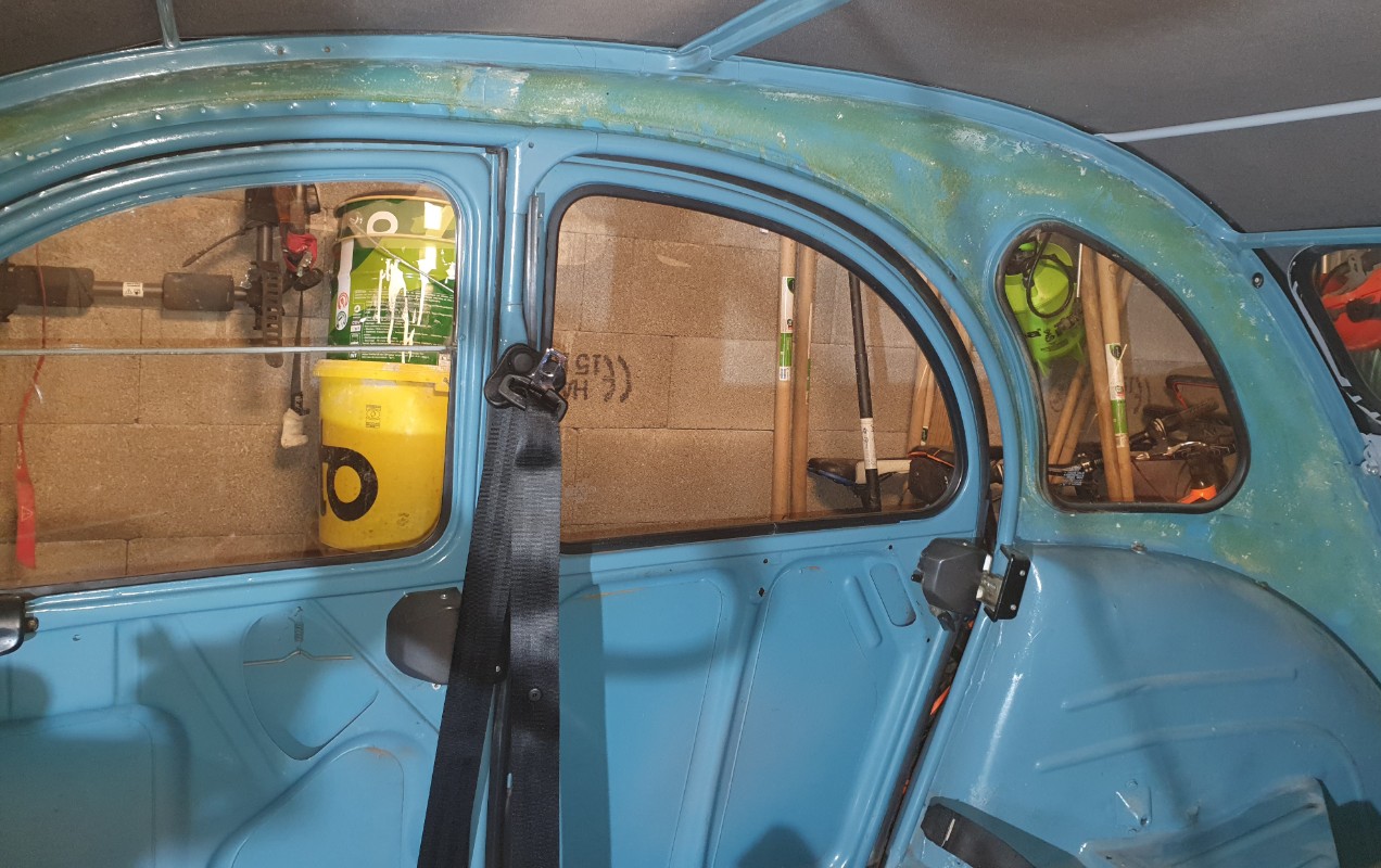 En attendant un peu de boulot sur le siège conducteur car j'ai du le sortir au maillet , il ne glisse pas dans son rail . En regardant de plus près.. son rail soude sur le châssis à été modifié, du coup la personne qui avait refait la 2cv de mon grand père a percé la caisse... écrou contre écrou.