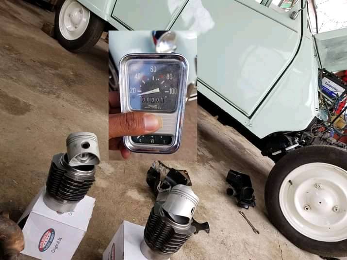 Avec une petite confection des pots de suspensions en inox et remplacement de l'ancien compteur et essai des nouveaux enjoliveurs.