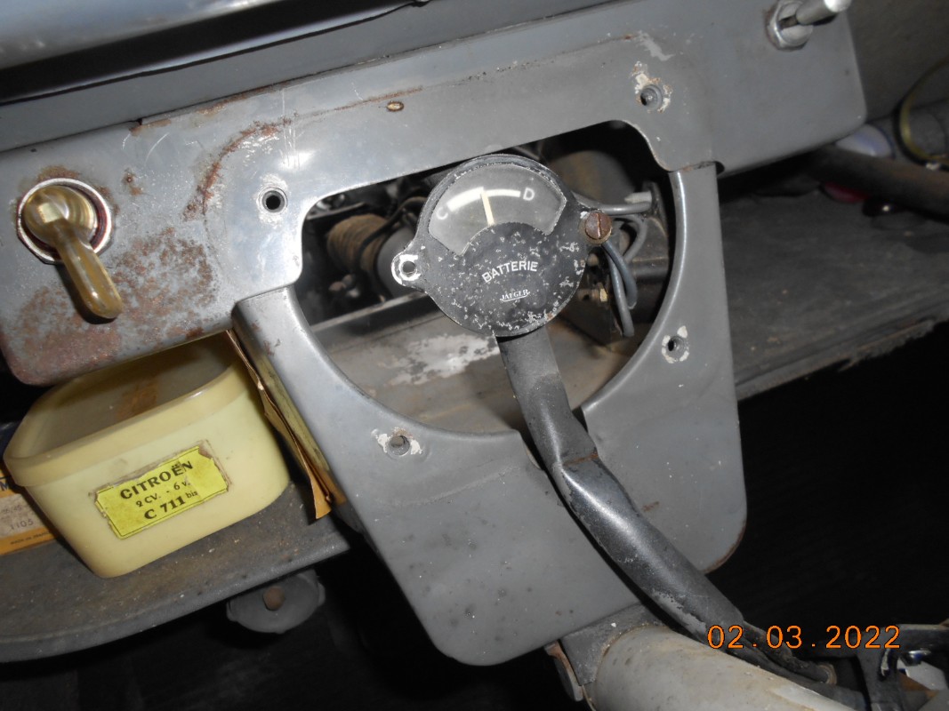 Démonter la plaque de tableau de bord avec les deux tirettes. Pour ma part je n'ai enlevé qu'une vis de l'ampèremètre et l'ai laissé en place...