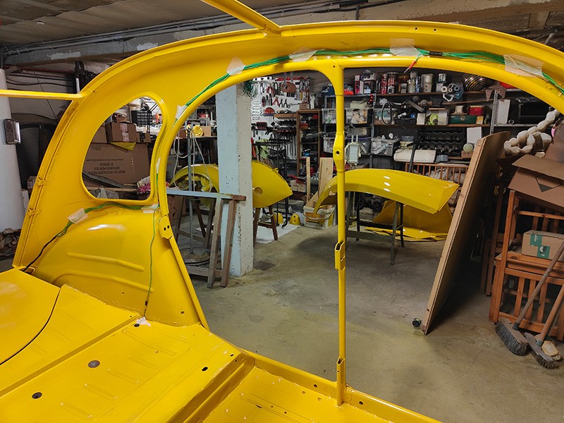 Comme c'est mon épouse qui a choisit la couleur jaune, c'est à elle également de me dire quelle couleur elle va choisir pour la sellerie, les garnitures de porte, feutrine et aussi la capote.