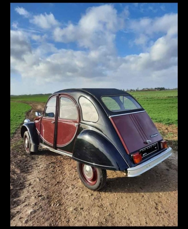 C'est une 2cv 6 qui a été modifié en look Charleston il y a une petite 10ene d'année. Désolé pour les puristes Charleston, ce n'était pas mon premier choix non plus mais l'occasion était trop belle et son état impeccable de châssis et plancher on finit pas me convaincre.
