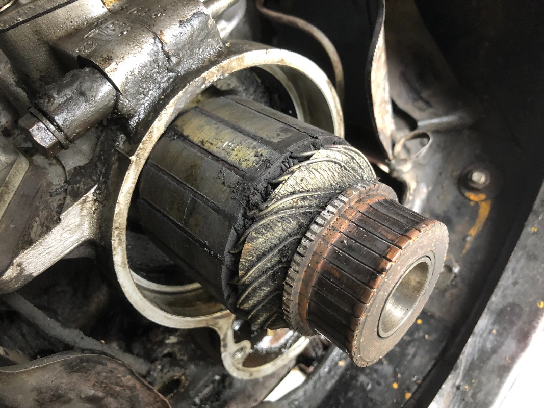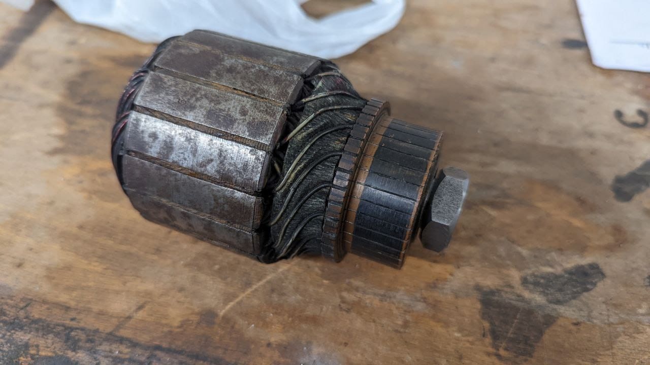 Ce rotor fonctionne bien mais la piste de frottement est complètement creusée, mais heureusement les charbons ont pris la forme et ça épouse correctement le tout.