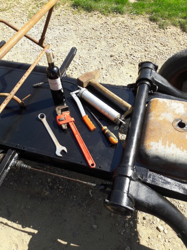 Ben, c'est moinsse pire que je croyais. Mais en attaquant la chirurgie esthétique de Georgette, en découpant à la meuleuse des éléments pourris, me sont venues aux narines des odeurs de mécanique ressurgies de mes 20-25 ans, les mêmes.Ah! la nostalgie! Du coup, j'ai ressorti la boite que tout deuchiste doit avoirpour trouver les boulons de 7, qui sont peut-être ceux de mes anciennes 2 pattesje les ai brossésvernis et remis en service sur mon nouveau carrosse