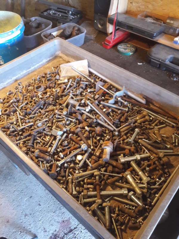 Ben, c'est moinsse pire que je croyais. Mais en attaquant la chirurgie esthétique de Georgette, en découpant à la meuleuse des éléments pourris, me sont venues aux narines des odeurs de mécanique ressurgies de mes 20-25 ans, les mêmes.Ah! la nostalgie! Du coup, j'ai ressorti la boite que tout deuchiste doit avoir