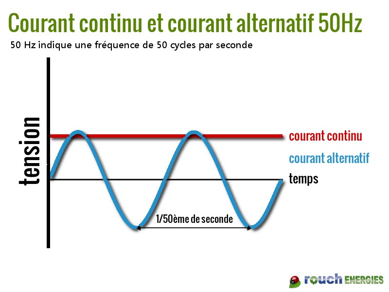 - Le courant alternatif a une crête haute et une crête basse, par rapport a une ligne horizontale