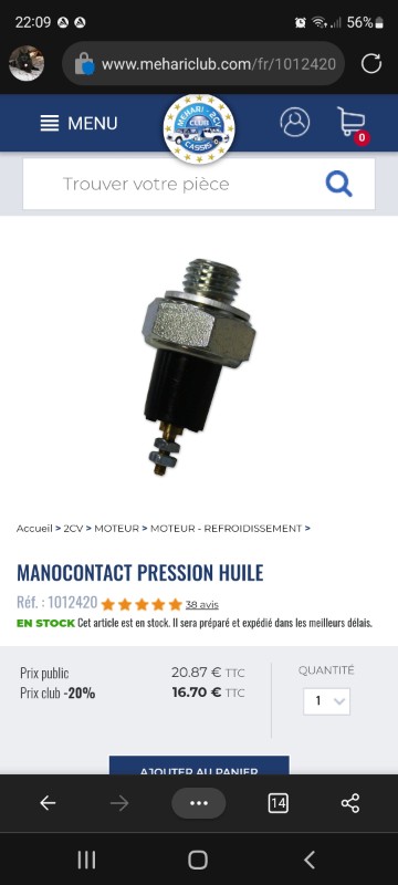 Un manocontact d'huile, qu'il soit d'occasion ou neuf, peu importe, du moment qu'il fonctionne.