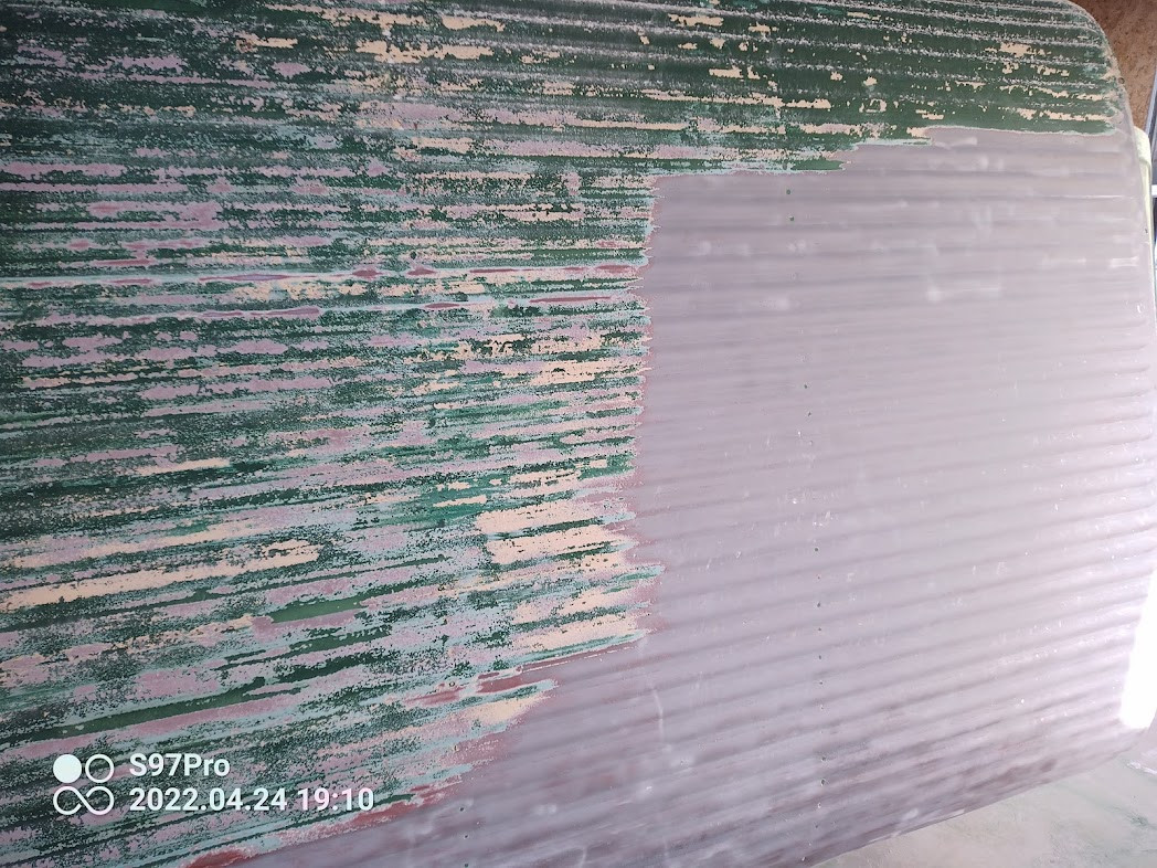 Du coup j'ai commencé en attendant le sablage du dessus car le ponçage avec toute ses rainures était impossible à faire proprement.