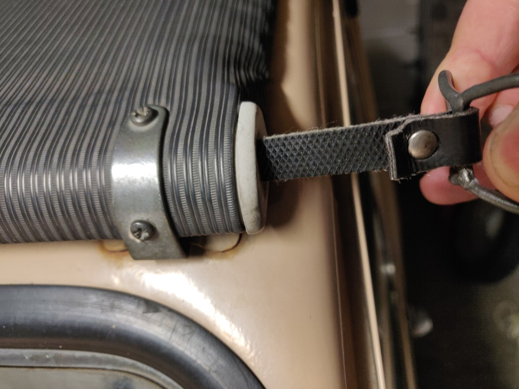 En matière de sangles de décrochage de la capote,Titine malencontreusement en a une plus courte que l'autre :pensif: , ce qui ne l’empêche de me mouvoir au quotidien mais restreint son potentiel quant il s'agit de profiter d'une ouverture "intégrale" incluant les sièges des passagers arrières :pascontent: