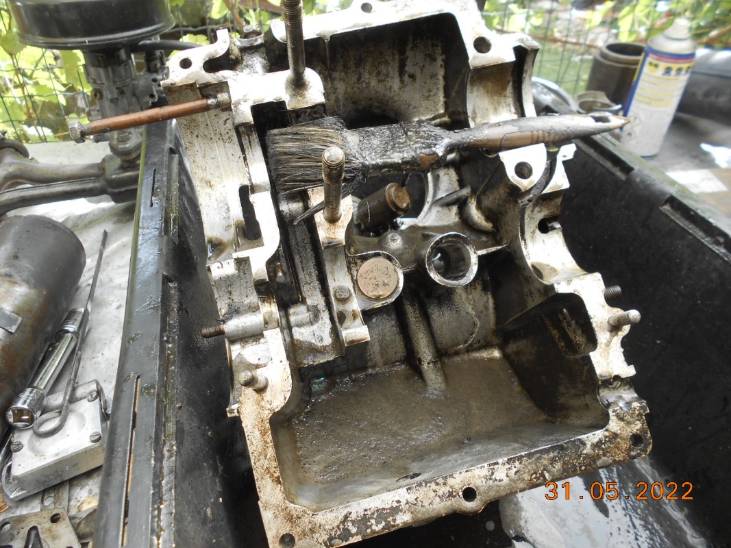 Poursuite avec le moteur... Démontage du second moteur qui lui n'était pas passé au Karcher...Il est vraiment difficile à décrotter car la couche est épaisse !!