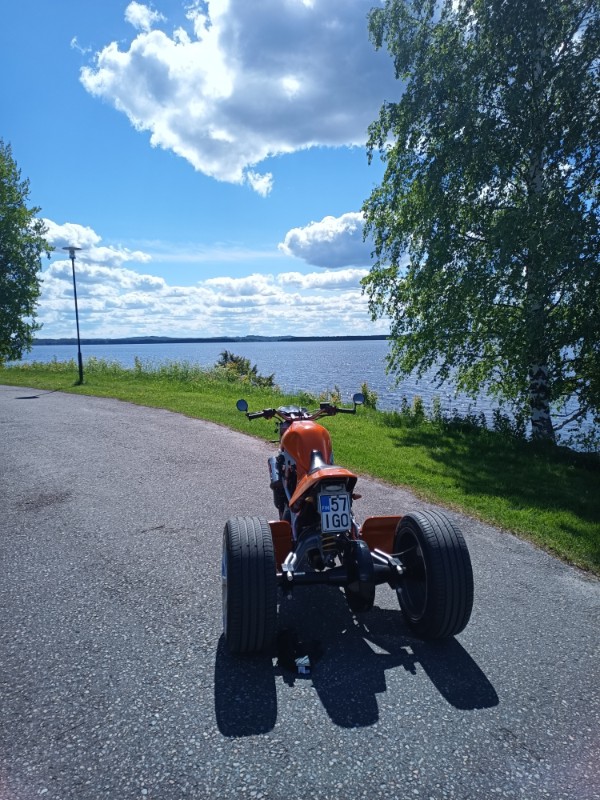 Je dois faire un peu plus de recherches sur le kit trike, je crois pas qu'il y ait un différentiel, et ça a un peu tendance à pousser tout droit quand on tourne. Pas de souci dans les grands virages, mais il va falloir un peu de pratique sur les petites routes :wink: