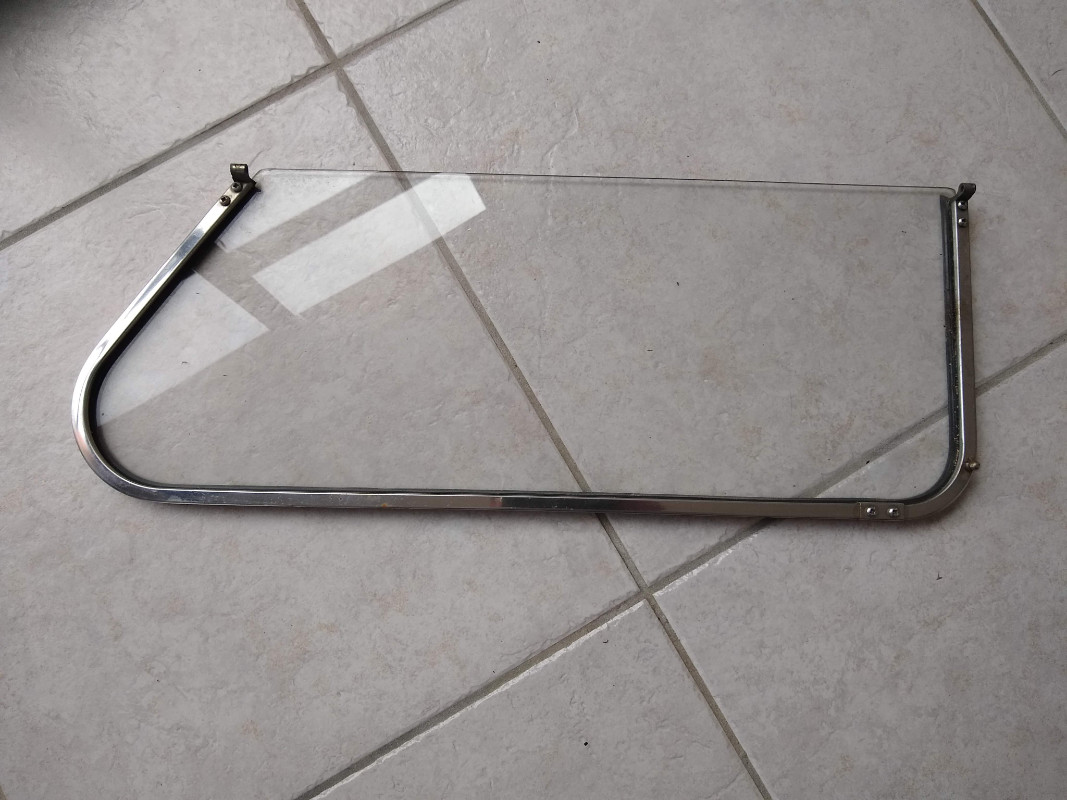 NB la petite languette (côté intérieur) qui permet d'accrocher le maintien de cette glace en position entrouverte n'y est plus ; donc, soit on s'en passe, soit on "recolle" une languette métallique