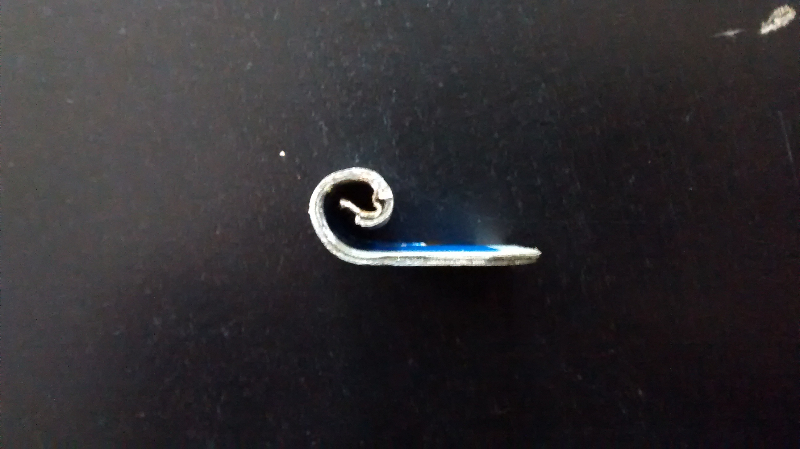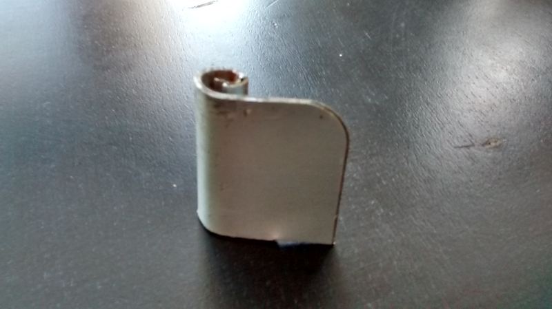 j'aurai voulu une cale en acier mais difficle à mettre en forme et j'avais une vieille plaque d'immatriculation sous la main (aluminium, plus tendre et deformable)