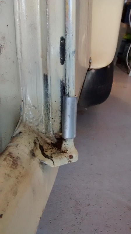 Pour la rénovation de ma type A dont les 4 portes s'affaissaient, on a formés des bouts de tôles de la forme des charnières et on les a soudés au bout, puis ajustés par meulage, et ça va bien.