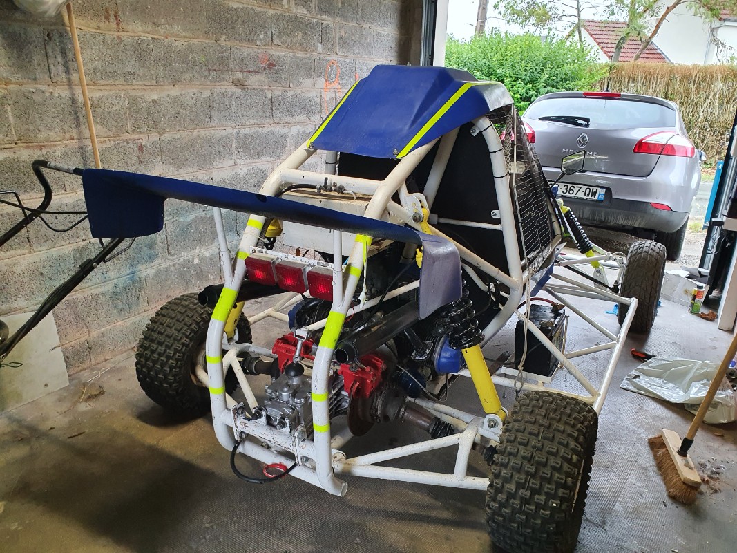 Ré oui sa marche fort est super agréable d'entendre le bruit de la 2cv il pèse 650kg c'est un kart cross fouquet 602 prévu pour de la compétition mais moi je préfère sur terrain privé ou chemin de campagne, il monte à 100kmh est c'est super agréable par ce beau temps et par la même occasion merci pour ce forum qui est plein d'information et d'amoureux de la 2cv merci de m'y accueillir