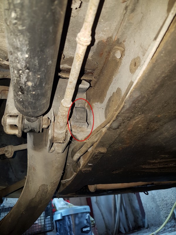 Non Nico, ça c'est la butée pour limiter la remontée des roues, dans le compartiments moteur il y a les butées pour limiter la descente des roues avec appuis sur le dessus du châssis, c'est là qu'il faut placer les cales.